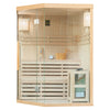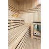 The interior is crafted from premium Canadian hemlock, selected for its durability, natural resistance to heat, and calm, Nordic-inspired appearance.