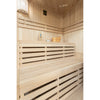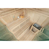 The interior is made from Canadian Hemlock, chosen for its durability, comfort, and suitability for sauna environments.